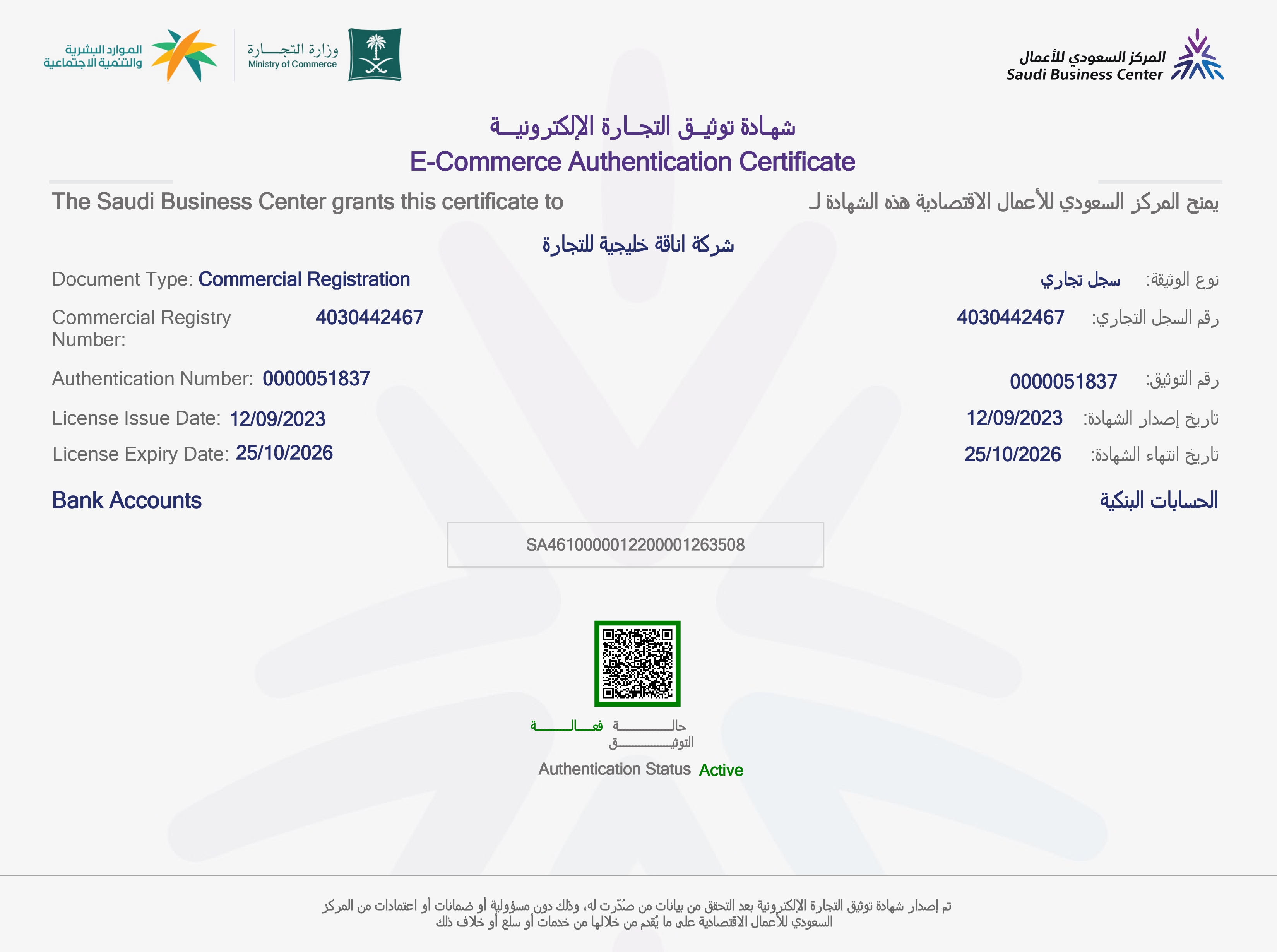 شهادة توثيق المتجر
